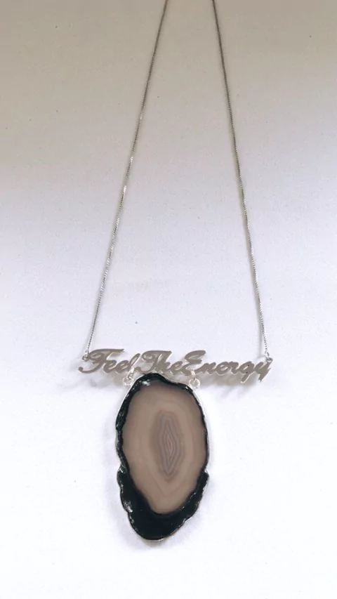 Gargantilha FEEL The Energy ⚡︎ Veneziana 45cm prata com banho de ródio ⚡︎ Placa de Ágata com acabamento artesanal ⚡︎Handmade